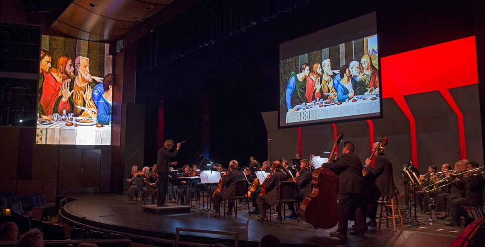 In 2018, the Cincinnati Chamber Orchestra saw a dramatic 50% increase in subscriptions. For their 45th anniversary they wanted to impress their new member with a one-of-a-kind performance honoring Leonardo Da Vinci. The show was one night only and hosted at the Cincinnati School of Creative & Performing Arts' Corbett Theater. Working within the limitations of the space and without distracting from the music taking center stage, the CCO desired a visual experience incorporating the artwork of Leonardo Da Vinci to accompany the performance.